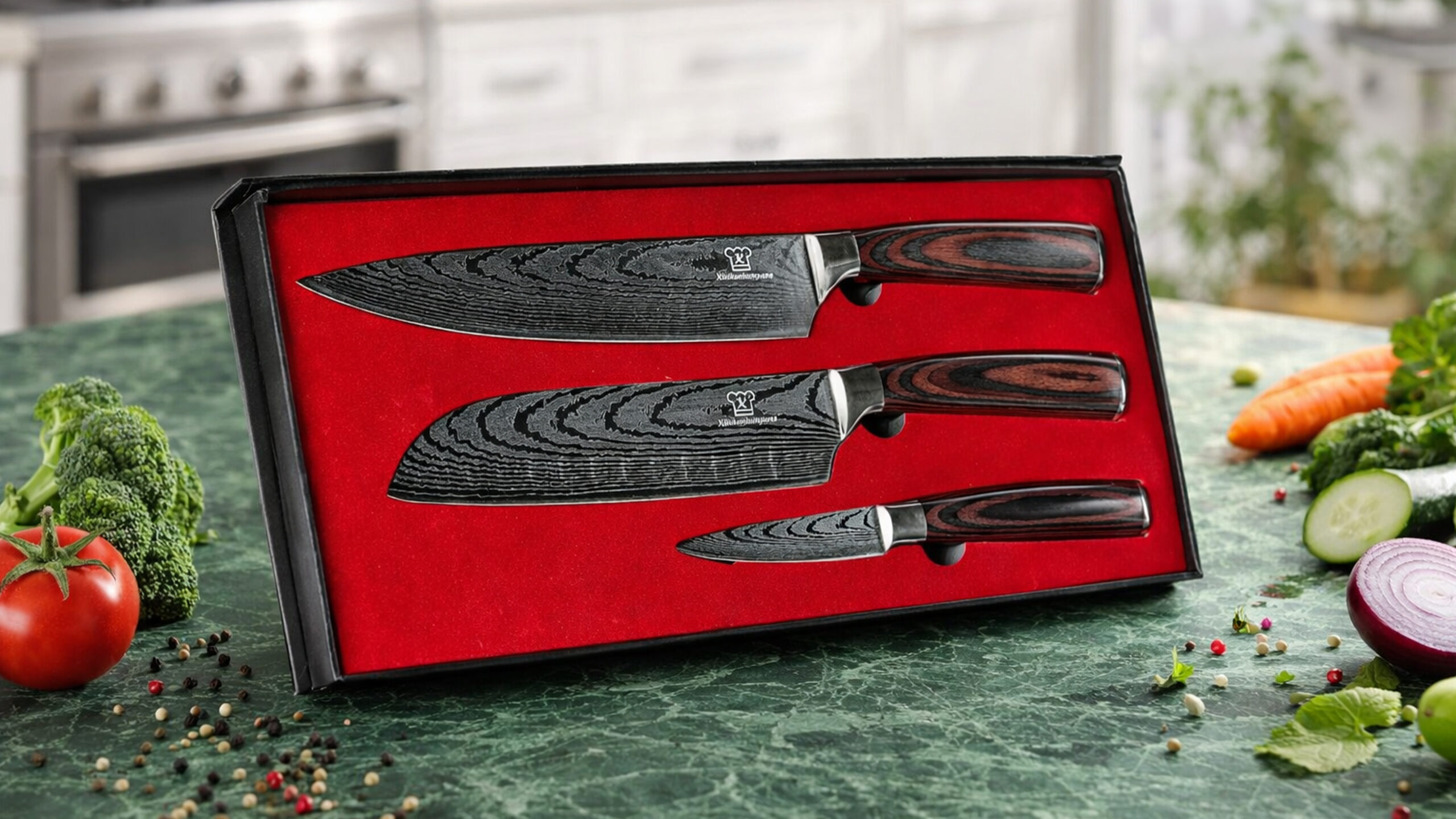 Das Set besteht aus drei Küchenmessern mit unterschiedlichen Einsatzbereichen – laut Küchenkompane „die perfekte Wahl für den Alltag in der Küche“. Nach Angaben des Herstellers bestehen die Klingen aus 7CR17-Edelstahl – einem rostfreien Stahl, der häufig bei Küchenmessern verwendet wird. Durch einen Härtegrad von etwa 60 HRC (Rockwell-Härte, ein Maß für die Härte von Metallen) soll der Stahl eine gute Balance aus Stabilität und Schnitthaltigkeit bieten.